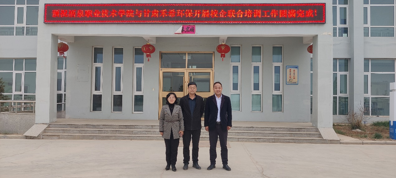 4月20日,必赢网址bwi437与甘肃禾希环保科技有限公司联合开展的新型学徒培训班开班,必赢网址bwi437党支部书记、院长白锦川、副院长任小娜、石化系系主任邢建伟赴甘肃禾希环保科技有限公司参加“甘肃禾希环保科技有限公司新型学徒培训班开班仪式”。