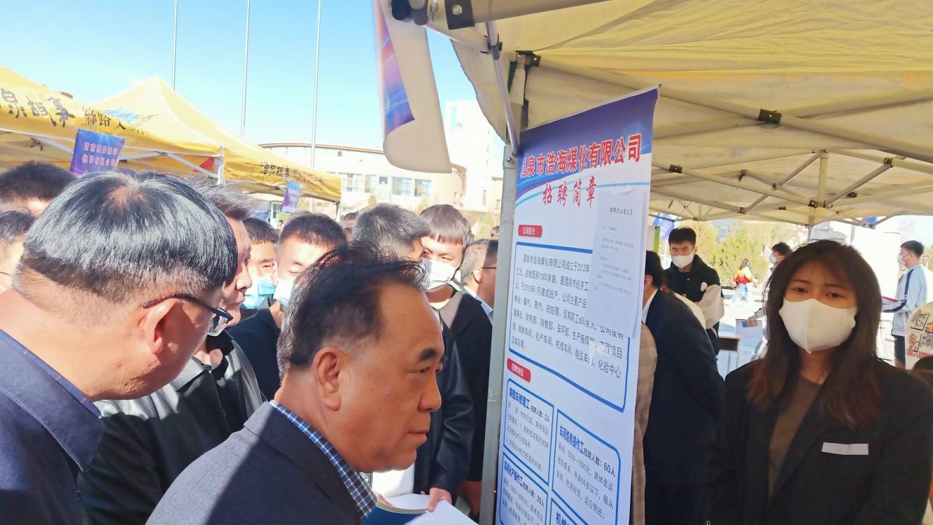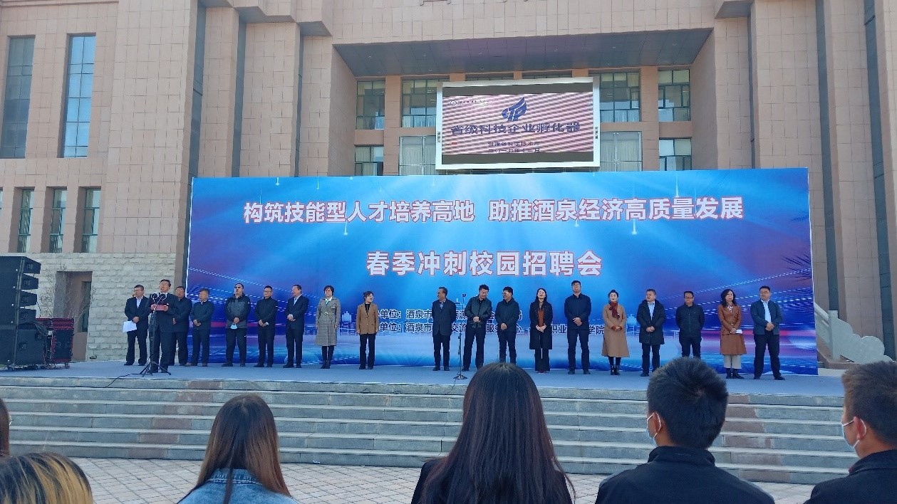 学校党委书记、校长易志军,学校党委副书记许军参加开幕式。开幕式后,校领导一行通过巡馆、召开座谈会等形式与前来参加招聘会的宁夏宝丰能源集团有限公司人资资源部部长韩二虎、酒泉市浩海煤化工有限公司常务副总经理毛燕军、甘肃金缘泰新材料有限公司总经理黄生荣、甘肃松盛医药有限公司总经理陆庆松、甘肃泰富德新材料有限公司总经理仇华、金塔县海拓化工有限公司董事长马国平、金塔宇迪医药科技有限公司总经理潘宇等化工类企业领导热情交流,详细了解企业生产运营、用工缺口等情况,关切询问企业在技能人才需求上面临的困难,并指出校企间要进一步拓宽视野、解放思想,在合作育人、校企合作、产教融合等方面大胆创新,共同培养符合企业的专门技能人才,为服务酒泉化工产业发展供给人力资源不断努力。