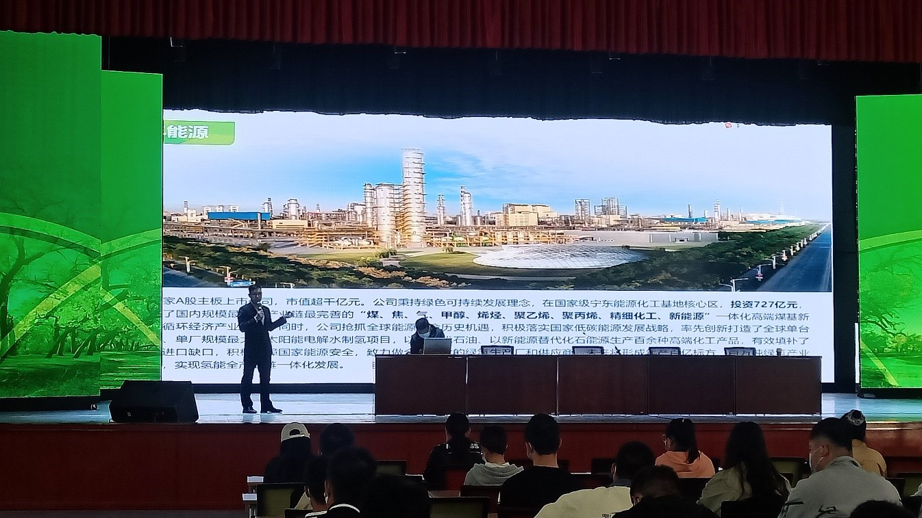 陈亮亮董事长结合自己成长经历,分享了自己大学毕业后,利用10年磨一剑,从一线操作员到副操、主操、副班长、班长、值班长、技术员、经理、董事长的成长经历,勉励大学生要脚踏实地,任劳任怨,通过不断学习和努力才能获取理想。韩二虎经理结合企业生产运行、文化建设、管理制度及团队管理等方面,详细讲述了大学生未来职业道路发展,他认为大学生应该在学习之余,时刻关注行业动态,为将来正确择业奠定基础。