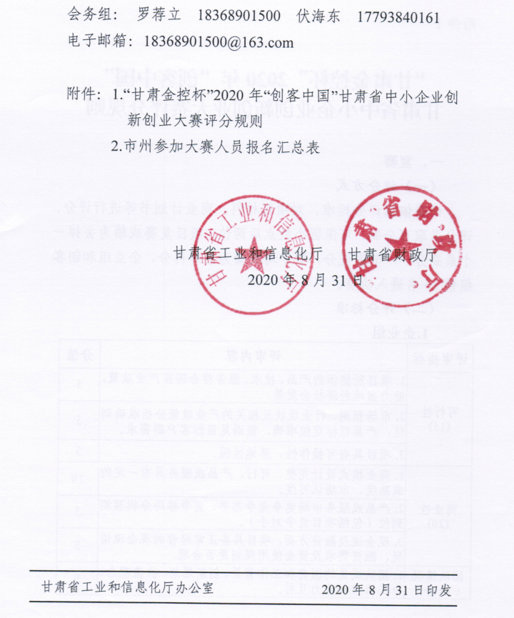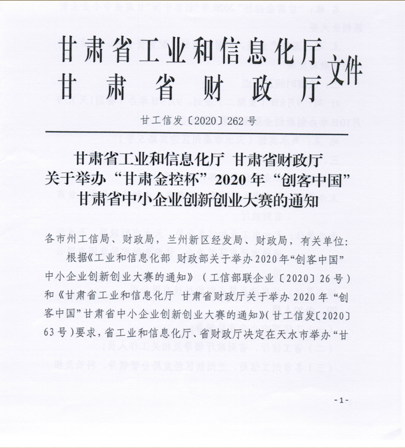 甘肃省工业和信息化厅 甘肃省财政厅关于举办“甘肃金控杯”2020年“创客中国”甘肃省中小企业创新创业