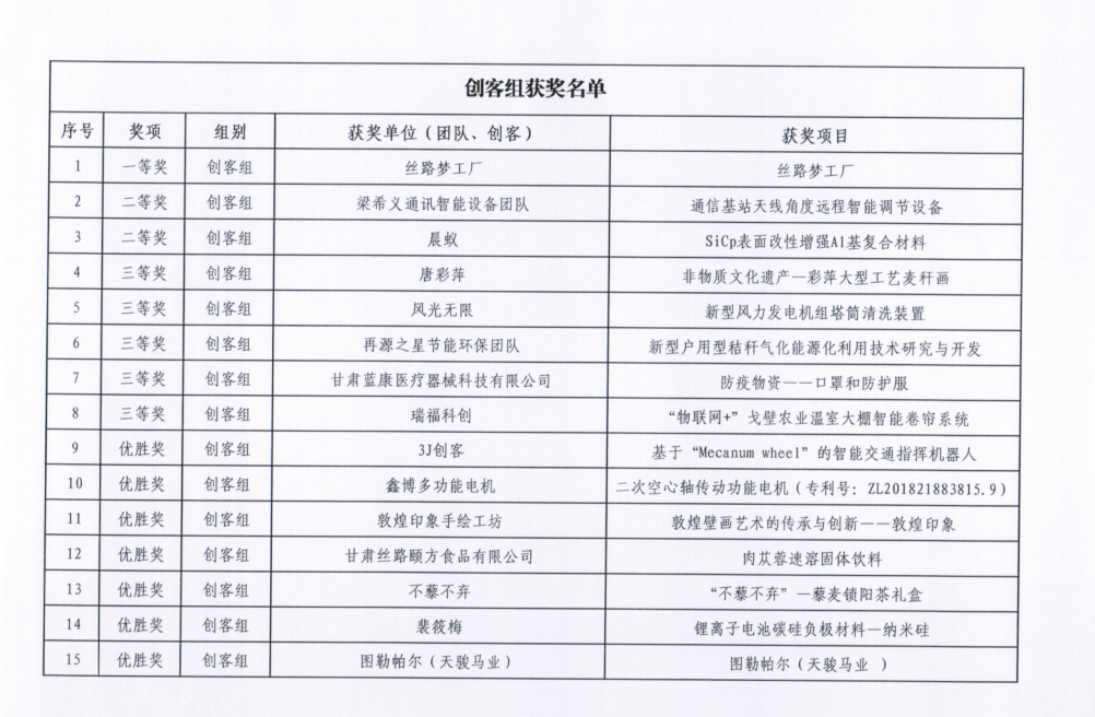 甘肃省工业和信息化厅 甘肃省财政厅关于公布“甘肃金控杯”2020年“创客中国”甘肃省中小企业创新创业