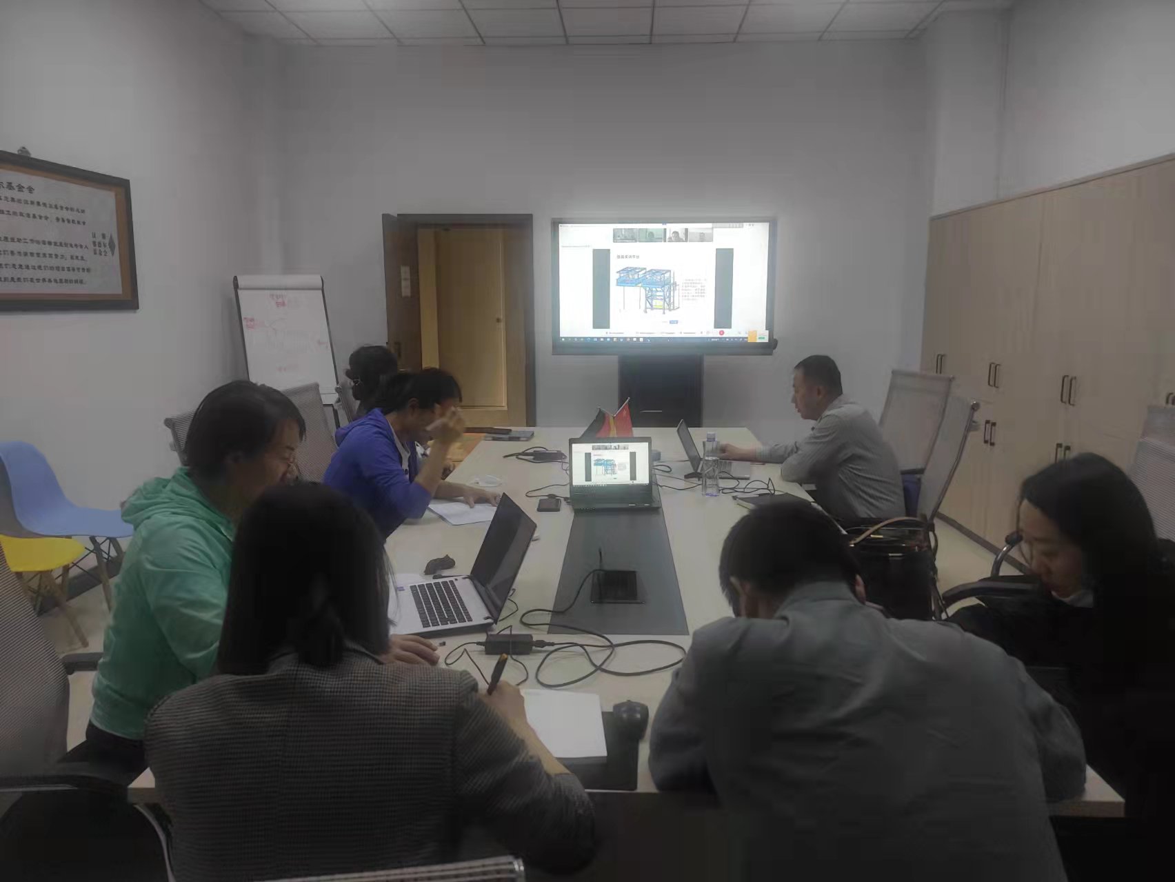 会上副院长张振伟对风力发电工程技术专业实训基地的硬件设备一一进行了详细介绍,专业骨干教师方占萍对虚拟仿真软件在教学中的应用情况进行了详细讲解。德方专家克莱默对我校风力发电工程技术专业实训设备条件予以肯定,并提出了如何更好的利用以上实训设备条件开展基于行动导向的项目化教学。